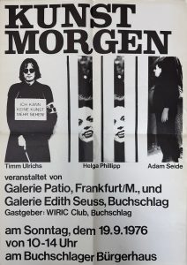 Aktion mit Helga Philipp, Adam Seide und Timm Ulrichs am Bürgerhaus Dreieich-Buchschlag, gemeinsam mit Galerie Edith Seuß.